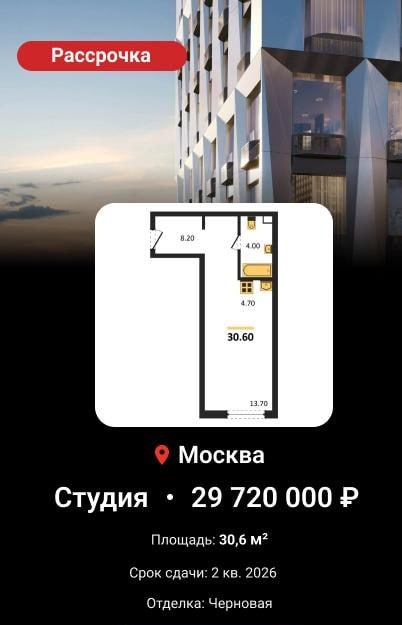 🏙 Студия 30,6 м² ▪️Бизнес-класс в престижном районе Очаково-Матвеевское, ЗАО. Рассрочка: 🟡Срок — 9 месяцев (до 15 декабря 2026). 🟡Первоначальный взнос — 30%. 📌 Ежеквартально: ▪️Стоимость — 20,5 млн ₽. ▪️Первоначальный взнос — 6,1 млн ₽. ▪️Платеж — 4,8 млн ₽. 📌 Ежемесячно: ▪️Стоимость — 21 млн ₽. ▪️Первоначальный взнос — 6,3 млн ₽. ▪️Платеж — 100 тыс ₽. ▪️Остаток — в конце срока. 🚫 Без возможности перехода на ипотеку. #Страна_Озерная #Страна_Девелопмент