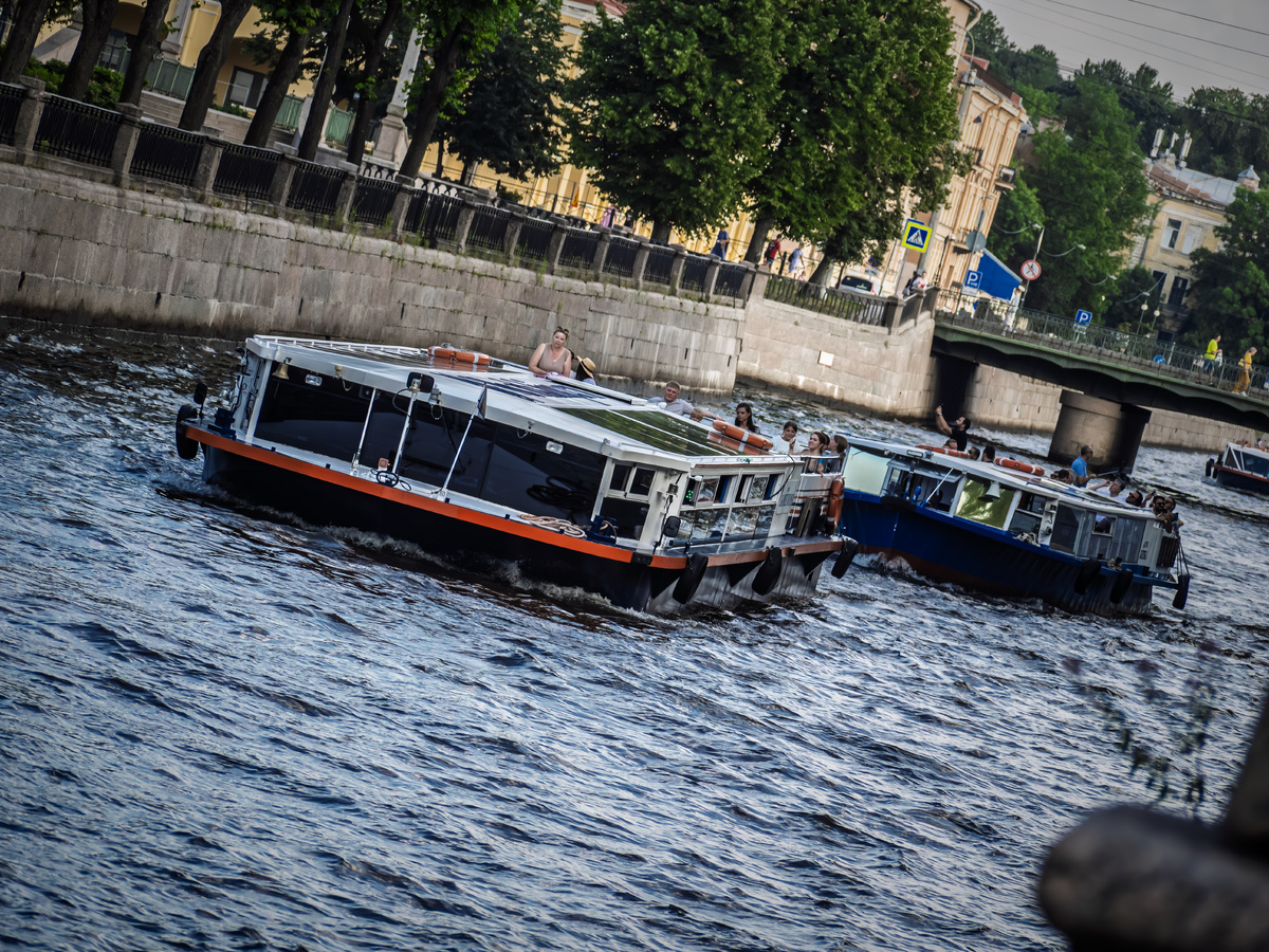 После столичной суеты я думал, что Питер - это только пыль старых библиотек и бесконечные очереди в Эрмитаж. Оказалось, я просто не видел его с воды. Стоило сесть в катер, как город для меня мгновенно сменил темп. Мимо пролетают гранитные стены, а большие речные трамвайчики выглядят как огромные неповоротливые киты, пытающиеся разойтись в узких каналах. В Москве река широкая, а тут все впритирку, каждый маневр - это отдельный сюжет для кадра. Здесь кипит настоящая жизнь. Речной трафик местами жестче, чем на Невском или на Садовом в час пик. Катера постоянно обгоняют друг друга, поднимая волну, которая весело бьет в борта моей лодки. Посмотрите на этих ребят в желтой лодке. Девчонки в ярких жилетах явно в восторге, что-то бурно обсуждают - наверняка выбирают, где пришвартоваться для лучшего селфи. Со стороны смотрится очень живо. А вот и серьезная техника попала в объектив. Катер с дерзким названием Мустанг режет воду, как острое лезвие масло. Глядя на него, понимаешь: скорость - это лу