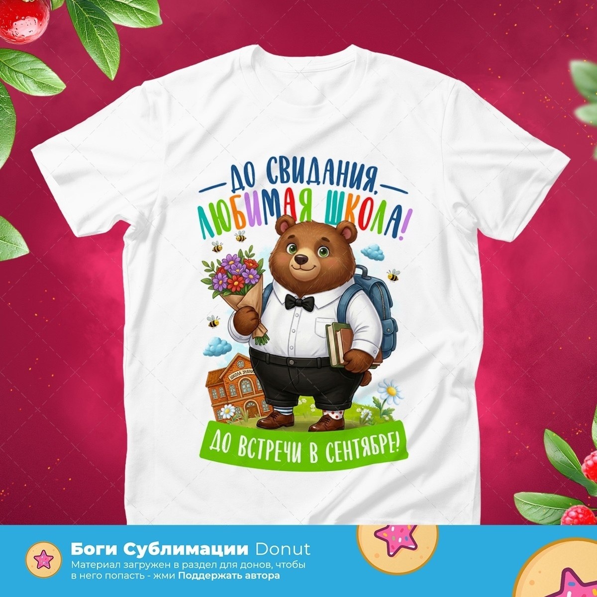 Принт на футболку До свидания, любимая школа. До встречи в сентябре. Чтобы скачать бесплатно, поддержите нас через VK Donut