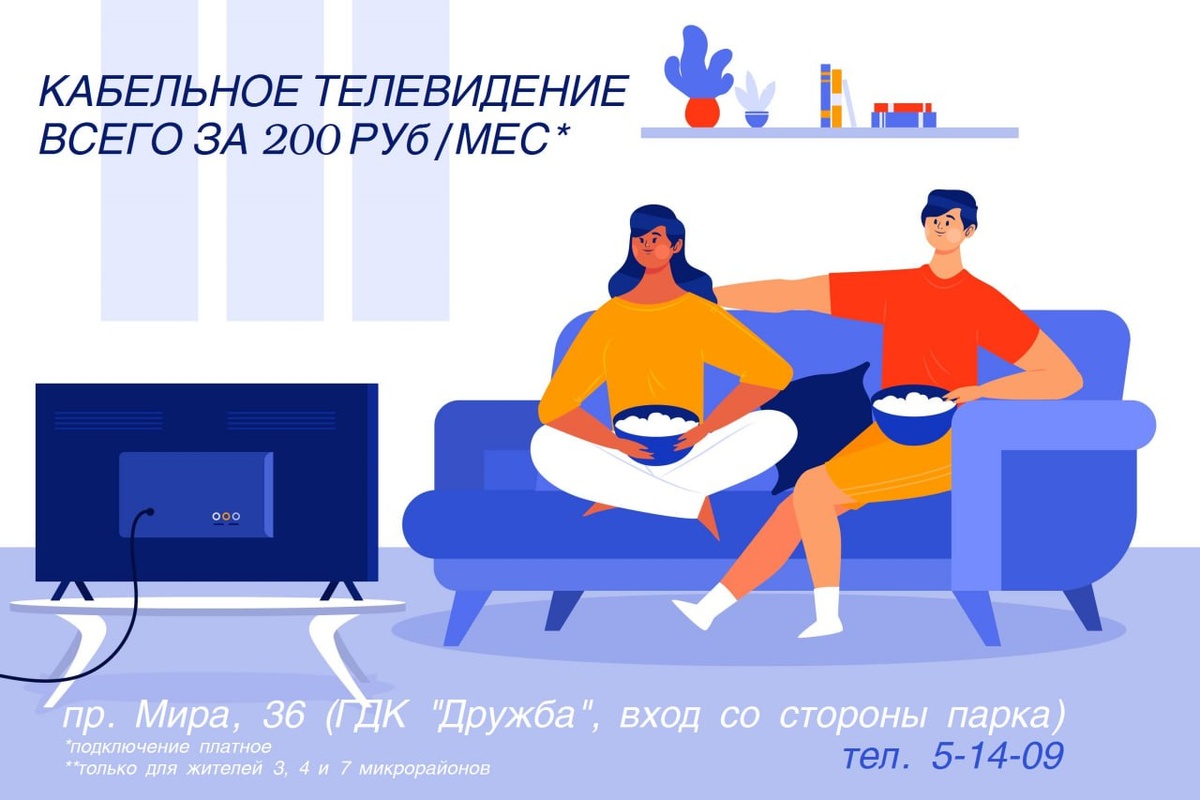 !* 👍 Кабельное ТВ от ИРТ позволяет получить удовольствие от просмотра передач, фильмов или других телевизионных программ. ☝️ Никаких приставок ☝️ Никаких антенн ✌️ Кабельное ТВ - намного разнообразнее по сравнению с общедоступным. 👉 Для вас различные каналы, отличающиеся по тематике: МЕСТНЫЕ, НОВОСТИ, КИНО, СЕРИАЛЫ, МУЛЬТФИЛЬМЫ, ПОЗНАВАТЕЛЬНЫЕ, РАЗВЛЕКАТЕЛЬНЫЕ, МУЗЫКАЛЬНЫЕ! 👍 Главное! Если подключить Кабельное телевидение ИРТ, число каналов будет очень внушительным и всего за 200 рублей в месяц. 📞 Подробности по телефону 5 14 09 Офис Илимского регионального телевидения – пр. Мира, 36 (ГДК «Дружба», вход со стороны парка) *Подключение платное **Для жителей 3, 4, 7 микрорайонов