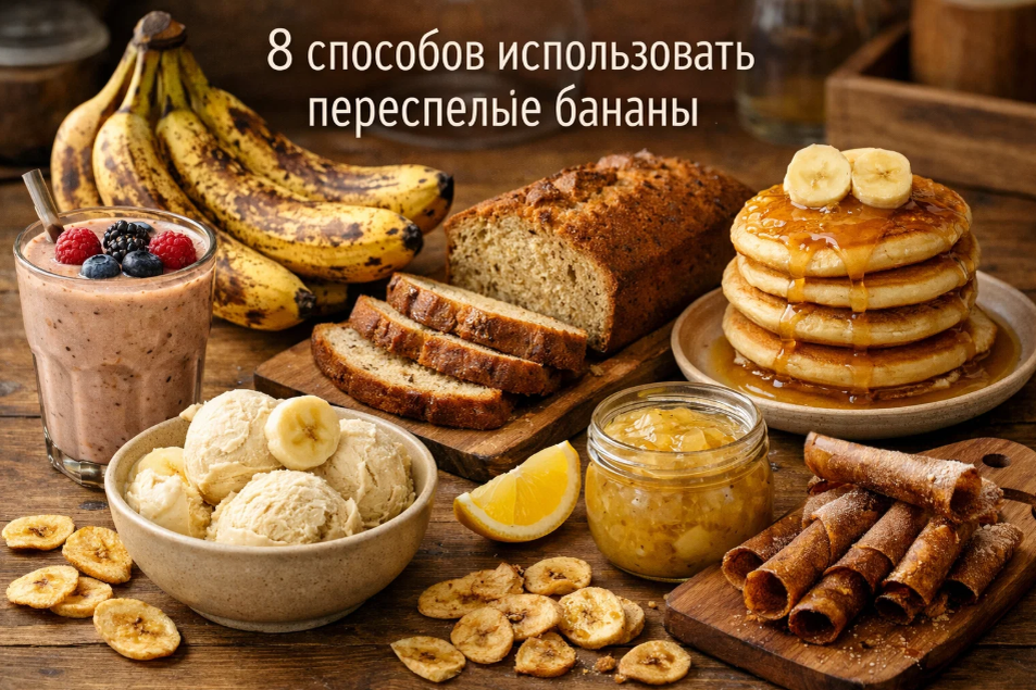 Каждый из нас хотя бы раз сталкивался с ситуацией, когда купленная связка бананов начинает покрываться тёмными пятнами быстрее, чем мы успеваем их съесть. Кожура становится коричневой, мякоть — мягкой и приторно-сладкой. Первый порыв — выбросить. Но делать этого категорически не стоит. Переспелые бананы — это не проблема, а возможность. По сути, именно в таком состоянии они раскрывают свой кулинарный потенциал на максимум.