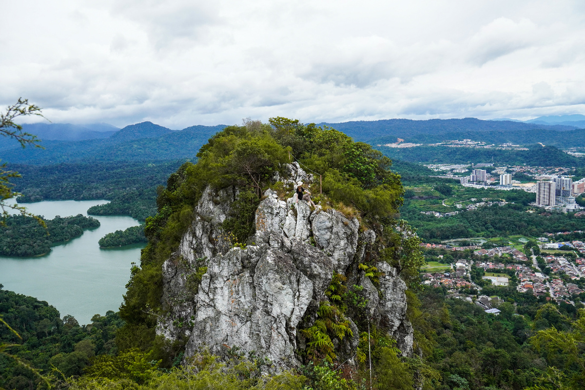 На тропе которую мы выбрали стояла вывеска с описанием маршрута и увидев лестницу вверх, мы поняли что нам туда. Маршрут полностью оборудован. После бетонной лестницы мы шли уже по лесу, периодически поднимаясь на части хребта, в одном из таких мест были привязаны строительные лестницы. На протяжении всего маршрута встречались зоны отдыха и он весь был промаркирован. Только в одном месте мы немного запутались, дорога раздвоилась и указатель вёл налево, в итоге та тропа начала уходить вниз, совсем не по нашему пути. Возможно это круговой маршрут указанный по карте, но сомневаюсь. Мы немного вернулись и пошли нужной дорогой. Высота хребта небольшая и казалось бы маршрут тоже нес