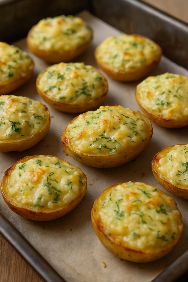 3. На половинки картошки выложить чесночно-сырную массу.