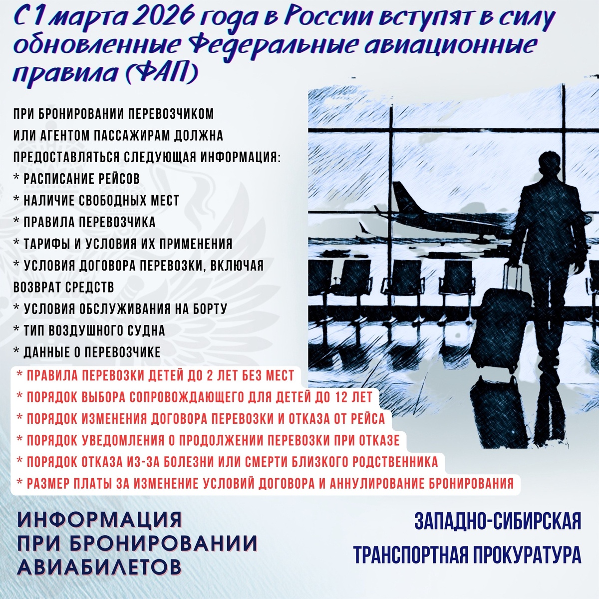 Весна принесла не только тепло, но и новые правила для тех, кто летает самолётами. Минтранс обновил Федеральные авиационные правила — они касаются перевозки пассажиров, багажа, детей и прав при задержках рейсов. Разбираемся в главном. 🧳📋 👶 Для семей с детьми — Теперь при бронировании обязаны подробно объяснять, как перевозить малышей до 2 лет без отдельного места и кто может сопровождать ребёнка до 12 лет. — Детскую люльку, автокресло или коляску можно провезти как бесплатную кладь, даже если ребёнка нет на борту (например, везёте коляску пустую). ♿ Для пассажиров с инвалидностью — Расширены возможности провоза средств реабилитации и протезов в ручной клади. Теперь это стало проще и понятнее. 🕒 Задержка рейса: что положено — Если рейс задержали больше чем на 30 минут — это официально считается вынужденным отказом от перевозки, можно вернуть деньги. — Чётко прописано, когда и что обязаны дать: воду — через час после двух часов ожидания, горячее питание — через два часа после ч