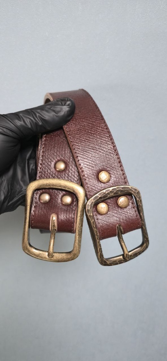 одном из ремней пряжка и винты из латуни ручной ковки - ну просто высший пилотаж! Да, кстати, вы заметили, что ремни из кожи "Инглиш Брайдл" у нас заказывают парой??? Нет, это не два разных заказа, а один! Это настолько восхитительная и качественная кожа, что этими ремнями хочется опоясать и себя и своих близких! Заказывая ремни из этой кожи вы будете одевать брюки/джинсы с особым удовольствием. Из-за особой обработки и дубления хочется постоянно держать эту кожу в руках, также специальное дубление придаёт коже долгий приятный древесный запах! Мастерская Ютерс. Настоящая кожа. Вечные ценности.