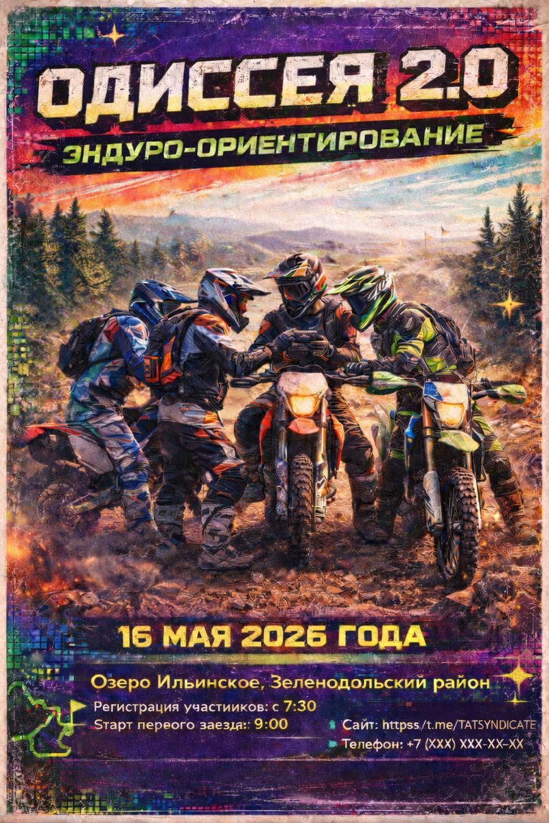 Открытая тренировка оп эндуро-ориентированию Одиссея 2.0 (Казань) Мотофесты RSS Мы начинаем регистрацию на ОТКРЫТУЮ ТРЕНИРОВКУ по эндуро-ориентированию, которая состоится 16 мая. СТРОГО 18+ Классы: любой. Максимальное кол-во участников: 60 чел. Расписание 07:30 – регистрация 09:00 – старт Взнос: 4000 р. Остальная информация в ТГ: https://t.me/TATSYNDICATE/11568 Состоится: 16.05.2026 Координаты: 55.889833, 48.668222 Место проведения: Казань #Казань #Мотофесты @motofesty