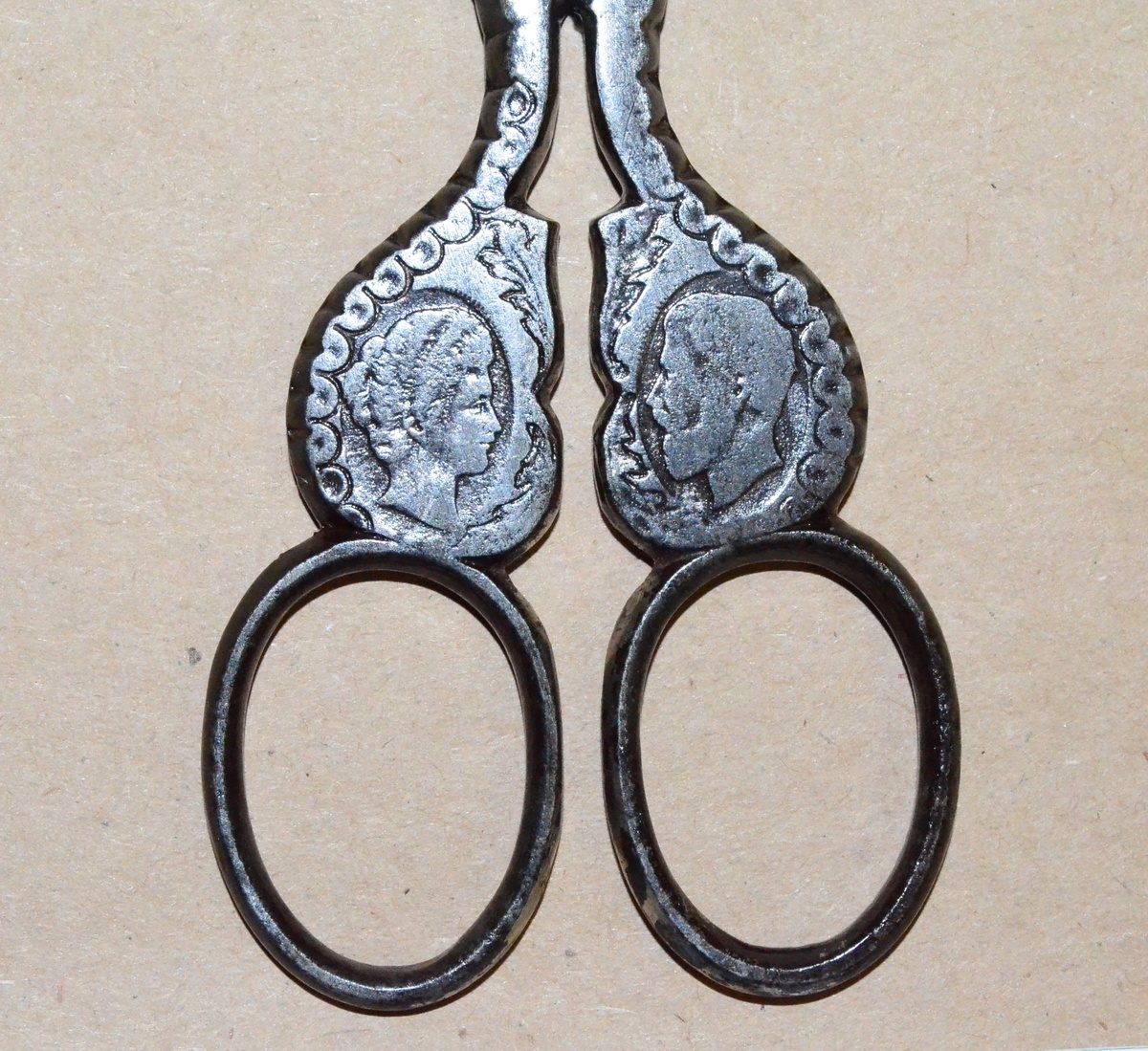В фондовом собрании музея‑заповедника «Кижи» хранятся изящные ножницы конца 19-го века. Нашли их случайно, отметила участница экспедиции, которая и наткнулась — в буквальном смысле — на артефакт. Ножницы были изготовлены в Германии, в городе Золинген, который прославился мастерами по производству холодного оружия и режущих инструментов. Производитель — компания «Курдтс Э. Х. Отто». Подтверждение этому можно найти прямо на предмете: рядом с местом соединения лезвий расположено клеймо — две скрещенные шпаги, пронзающие треугольник, — и надписи «CURDTS NACHF.» и «SOLINGEN». Ножницы созданы как памятный сувенир в честь свадьбы английского короля Георга Пятого и королевы Мэри, состоявшейся в июле 1893 года. Грандиозное событие получило широкий отклик: его запечатлели на гравюрах и открытках, а также выпустили тематические предметы. Ручки ножниц украшены двусторонними овалами с портретами молодожёнов — короля и его супруги. В 2004 году ножницы поступили в собрание музея «Кижи». Они были полу