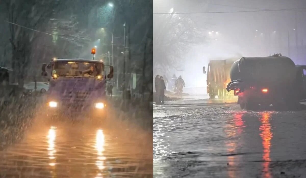 Дождевые и талые воды затопили улицы Шымкента и Семея. Местные власти ведут работы по откачке разлившейся из-за обильных осадков воды, передает Azattyq Rýhy. В Шымкенте за короткий промежуток времени выпало количество осадков, превышающее суточную норму. Несмотря на продолжающиеся дожди, специалисты проводят работы по откачке скопившейся воды на улицах, во дворах жилых домов и на участках, где наблюдаются локальные подтопления. «К работам привлечены бригады коммунальных предприятий, специализированная техника и сотрудники Департамента по ЧС. Параллельно проводится очистка ливневых канализаций и арычной системы для обеспечения беспрепятственного отвода воды», – сообщили в акимате города Шымкента. Принимаются все необходимые меры для оперативного отвода воды и стабилизации обстановки. Откачка дождевой воды продолжается круглосуточно и в Семее. «В настоящее время непрерывно проводятся работы по откачке воды и ее отводу в безопасные зоны. К работам привлечено в общей сложности 250 человек.