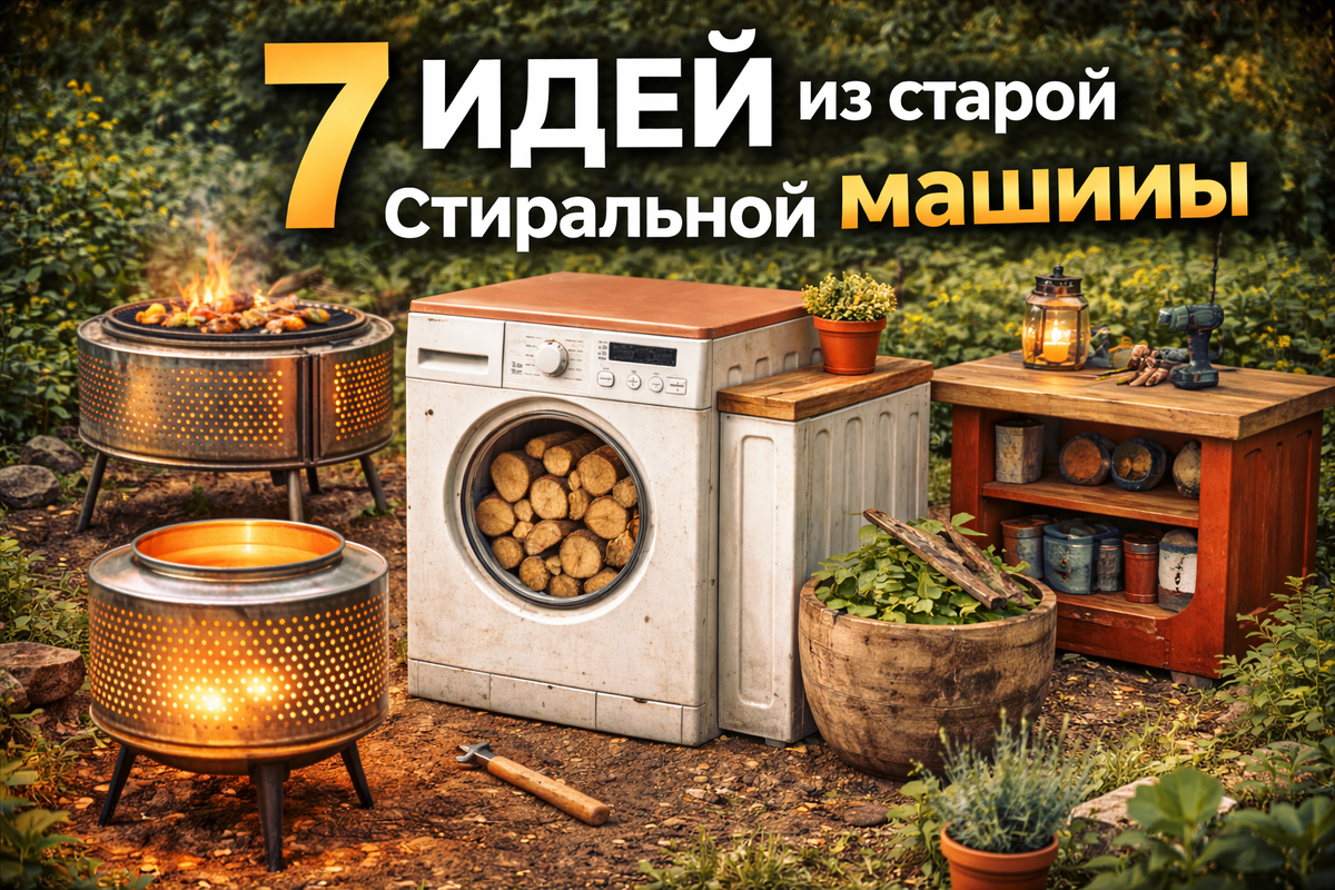 Но на самом деле многие её части можно использовать повторно. Некоторые дачники делают из неё полезные вещи для участка, которые служат годами. Покажу несколько интересных идей. Барабан стиральной машины идеально подходит для мангала. Почему: Как сделать: Получается компактный и очень долговечный мангал. Ещё один вариант использования барабана — садовый очаг. Что делают: Отверстия создают красивый эффект —