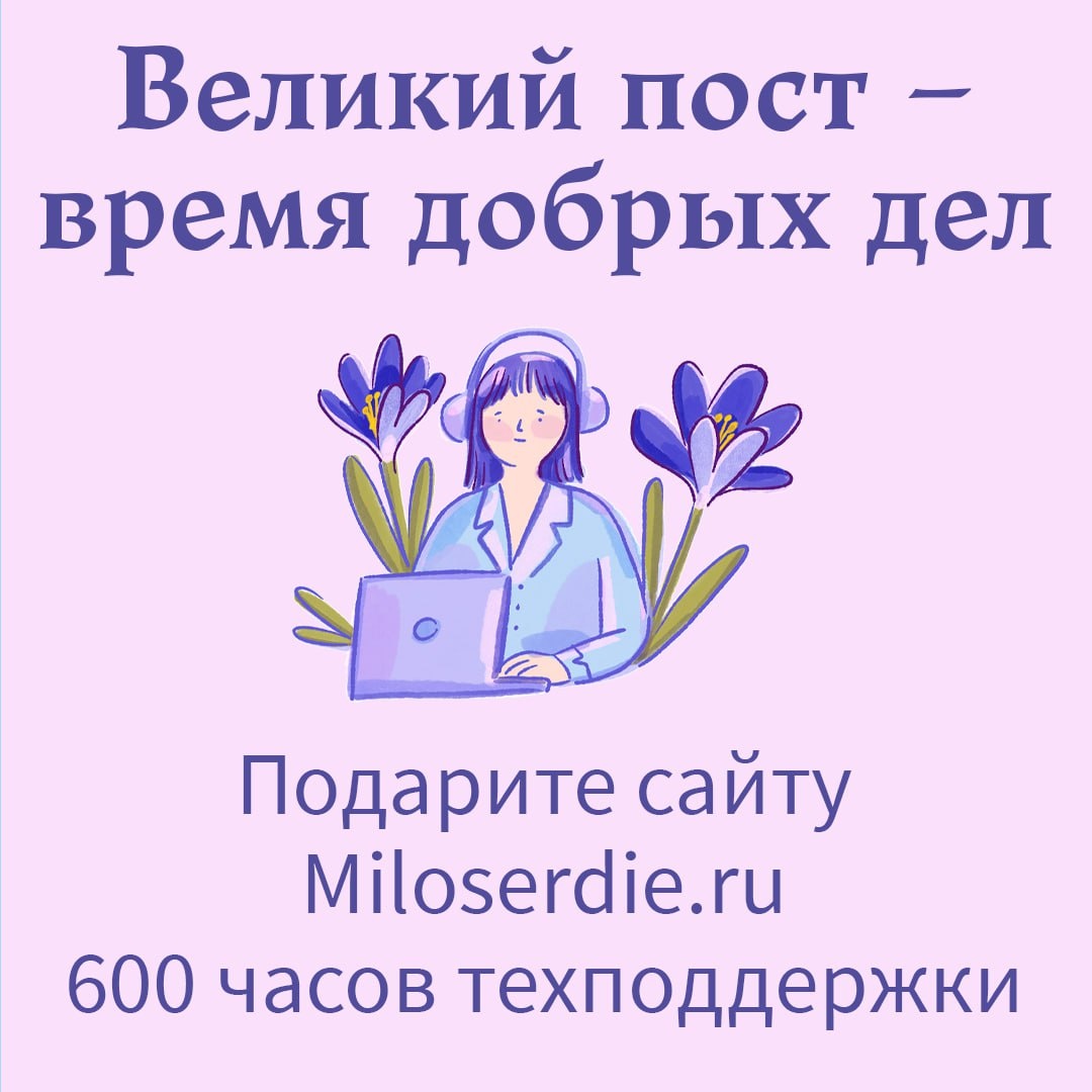 Чтобы на сайте не было перебоев и дела милосердия спасали как можно больше людей, нам нужна техподдержка: оплата хостинга, обслуживание компьютеров, работа айти-специалиста. 🔁 Просим пожертвовать любую сумму на странице акции. Акция продлится до 11 апреля. 📮 Поделитесь этой информацией с теми, кто хочет провести Великий пост с пользой! #поствремядобрыхдел