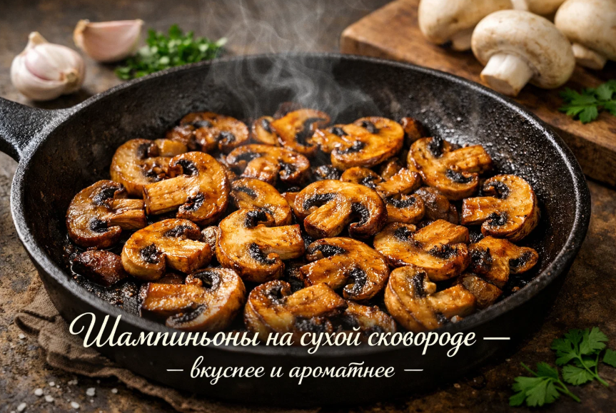 Я честно не понимаю, почему этот способ до сих пор не стал повсеместным. Возможно, дело в привычке. Нас с детства учили, что жарить — значит на масле. Но стоит один раз увидеть, как шампиньоны преображаются на сухой сковороде, и старые привычки уходят сами собой. Попробуйте — и вы поймёте, о чём я говорю.