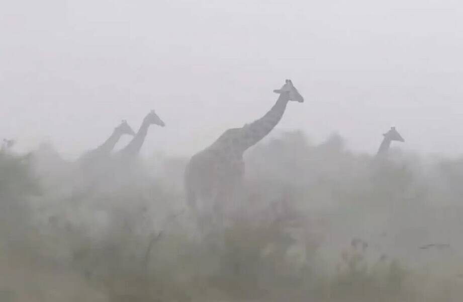 Видео: жирафы во время дождя просто стоят и ждут, когда он закончится