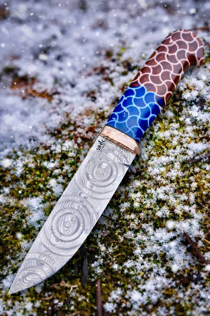 »! 🦌🔪 Ребята, просто посмотрите на этот эксклюзив! Перед вами действительно особенный экземпляр. 🔪 Клинок: нержавеющая дамасская сталь с шикарным узором — большая роза. Это не просто нож, а настоящая эстетика в руках. 🎨 Рукоять: прозрачный 3D-акрил, который круто играет на свету и добавляет ножу современный стиль. Нож ещё в наличии и ждёт своего покупателя. Хотите забрать этого красавца? Пишите в сообщения группы! 📩