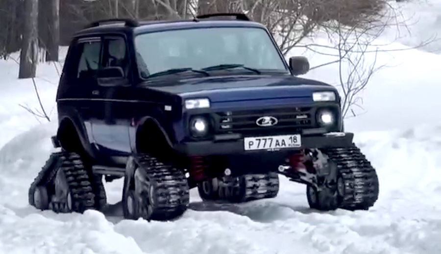 Специалисты одной из мастерских Ижевска сделали гусеничный вездеход на базе «Лады Нивы Спорт». Стандартный внедорожник «Лада Нива Спорт» лишился всех четырёх колёс — вместо них на машину поставили гусеничные движители. Естественно, такой тюнинг потребовал серьёзного вмешательства в конструкцию внедорожника: инженеры мастерской сделали оригинальные проставки, которые позволили соединить гусеницы со ступицами. Чтобы снизить нагрузку на трансмиссию, на автомобиль поставили также ограничители хода подвески. Гусеничную «Ниву» уже испытали и на дорогах Ижевска, и на снежной целине в окрестностях города. Внедорожник более чем уверенно передвигается по глубокому снегу, но при этом спокойно едет и по асфальту городских улиц. Короткий видеоролик, показывающий возможности машины, можно увидеть в наших каналах в телеграме или максе. Ранее мы показали, как одна из московских мастерских решила стилизовать новую «Ниву Спорт» под классическую «Ниву» образца 1976 года.