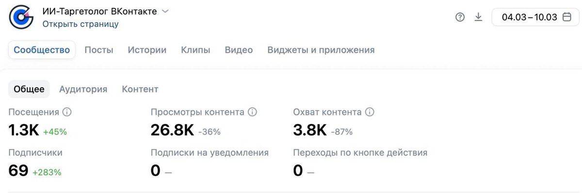 Если вы хоть раз запускали рекламу в ВК на услуги для бизнеса, то знаете — это территория, где за каждого клиента идет битва, а бюджеты улетают со скоростью света. Обычные агентства обещают «золотые горы», но по факту приносят подписчиков по 150+ рублей. Что сделали мы? Просто включили нашего ИИ-бота для продвижения собственного сообщества. Результат на скриншоте: Рост посещений на 45% за неделю. Прирост подписчиков +283%. Цена одного подписчика — всего 15–20 рублей. Это не случайность и не «повезло». Это математика нейросетей в действии. Наш бот сам проанализировал аудиторию, сам создал тексты и изображения, которые «бьют» точно в цель, и сам управляет ставками 24/7.