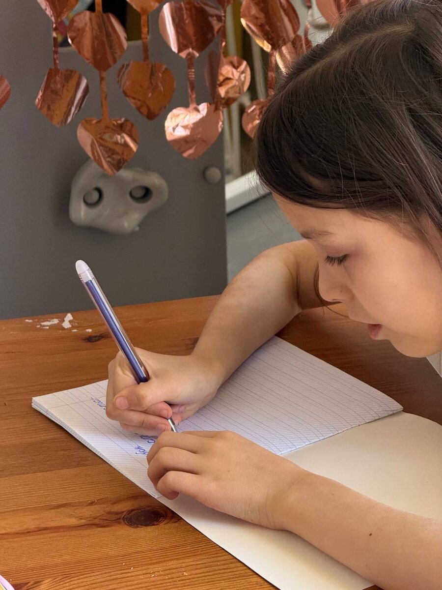 в субботу утром сама принесла книжку, тетрадь и села переписывать сказку
