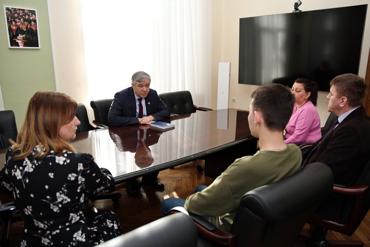 Ректор Тульского государственного университета Олег Кравченко встретился со студентом, который принял решение отправиться на службу в войска беспилотных систем. Об этом сообщили в пресс-службе вуза. Ректор назвал выбор молодого человека мужским поступком и заявил, что гордится студентами, которые принимают такие решения. Сам студент пояснил, что не смог остаться в стороне и его выбор был осознанным. На встрече присутствовала мама будущего военнослужащего. Она подтвердила, что полностью поддерживает сына. Кравченко заверил, что руководство университета и института всегда будет на связи, пожелал студенту удачи, скорейшего возвращения домой и Победы.