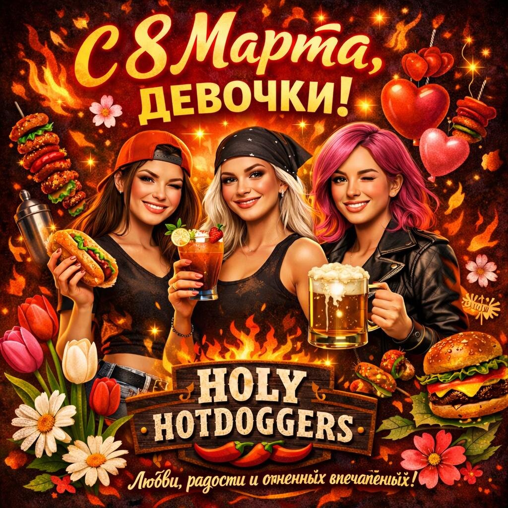 Пусть сегодня будет больше улыбок, цветов, лёгких разговоров и хороших бокалов. Весна начинается именно с этого дня — когда вокруг становится больше красоты, тепла и настроения. В честь праздника у нас маленький комплимент от бара. Если вы подписаны на наш канал — можно выбрать угощение: кофе домашний лимонад настойка бокал разливного пива бокал хаус игристого Просто покажите подписку — и бар нальёт. За весну, настроение и за вас. С праздником. #HolyHotdoggers #HolyFriends #FastCasual #кудасходитьспб