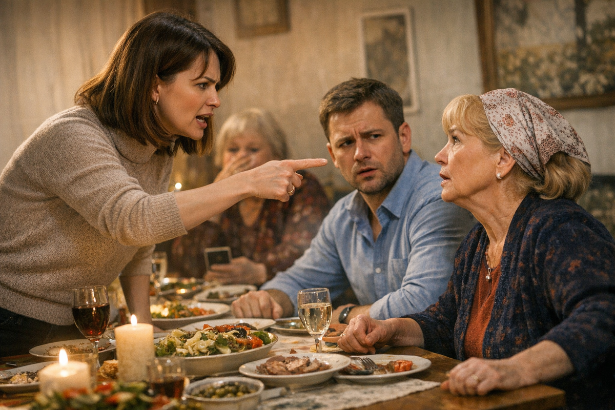 Тишина за столом стала вязкой, неловкой, как будто все внезапно вспомнили о чём-то важном и одновременно сделали вид, что ничего не происходит. Ложки звякнули о фарфор и замерли, разговоры оборвались на полуслове. Свекровь сидела прямо, сложив руки перед собой, и смотрела на меня выжидающе, с тем спокойным превосходством, которое всегда выводило из равновесия. Муж тяжело выдохнул и наконец поднял глаза, но встретиться со мной взглядом не решился — посмотрел куда-то мимо, в пространство между людьми.