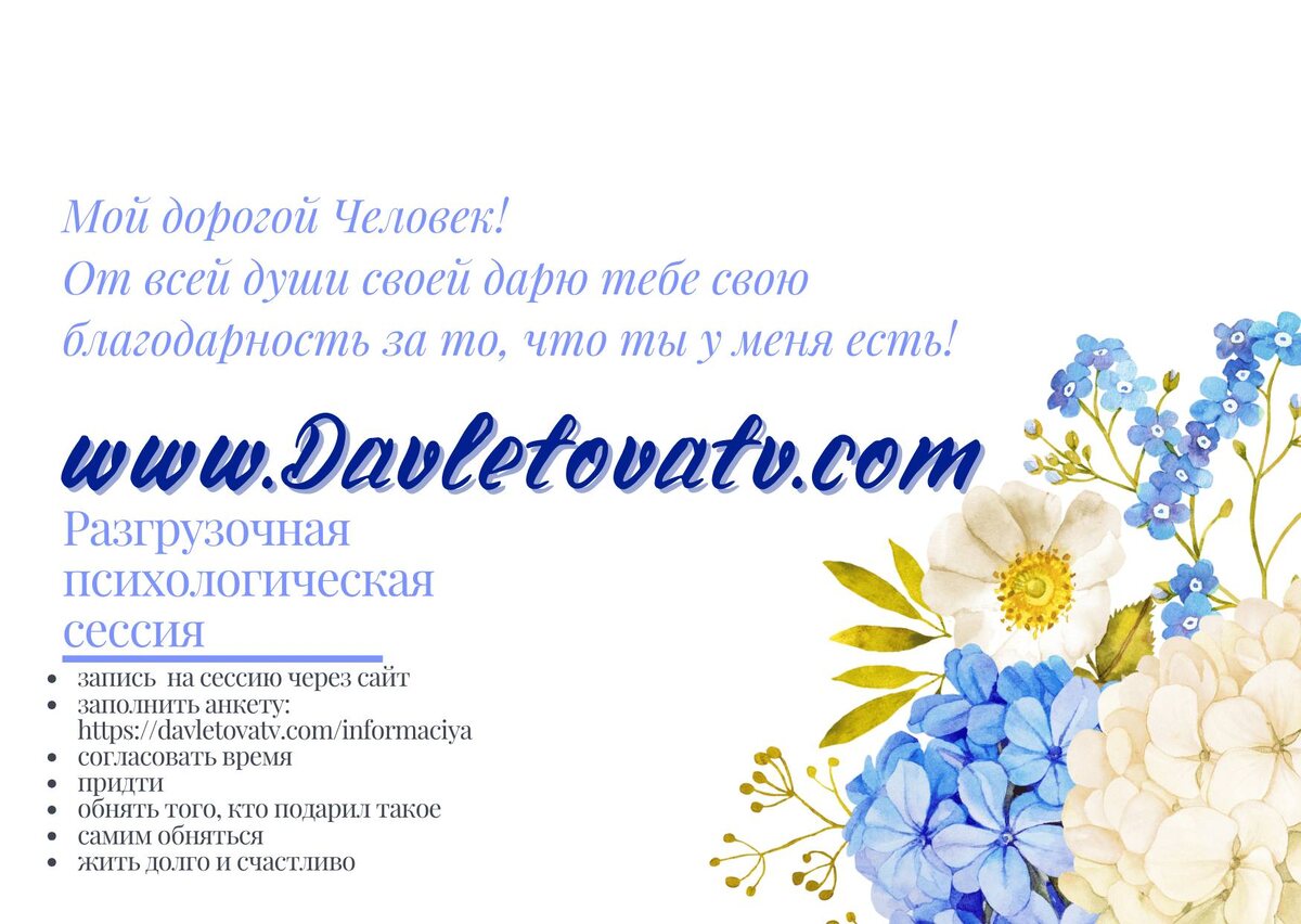 Кстати, этот подарочный сертификат уже готов. Можно просто скопировать и оправить близкому человеку. Процесс получения подарочного сертификата на психологическую сессию максимально прост: 1) Оплата подарочного сертификата совершается не в момент вручения, а за сутки до сессии. 2) дарите сертификат 3) Когда с психологом свяжется обладатель сертификата и назначит сессию, за сутки произвести оплату Подробности: https://davletovatv.com/blog-tatiana-davletova/tpost/iedfxk0ko1-podarochnii-sertifikat-perezagruzka #подарочныйсертификат #8марта