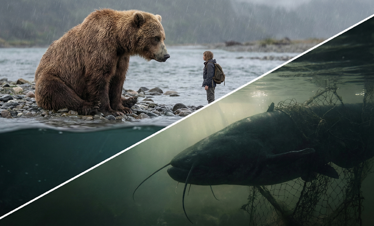 На поверхность медленно всплыл гигантский сом. Это был тот самый речной монстр из легенд, которыми пугали друг друга местные рыбаки. Рыба была невероятно огромной, старше самого Степана, настоящим речным старожилом. Но сейчас этот могучий подводный владыка выглядел жалко. Оказалось, старый сом тоже стал жертвой этой же браконьерской снасти много недель назад. Его огромное тело было опутано стальными тросами, жабры едва двигались. Опутанный сетями, он не мог нормально охотиться и в слепой ярости крушил лодки рыбаков, которые проплывали мимо, принимая их за источник своих страданий. Он просто пытался выжить и освободиться от железных оков.