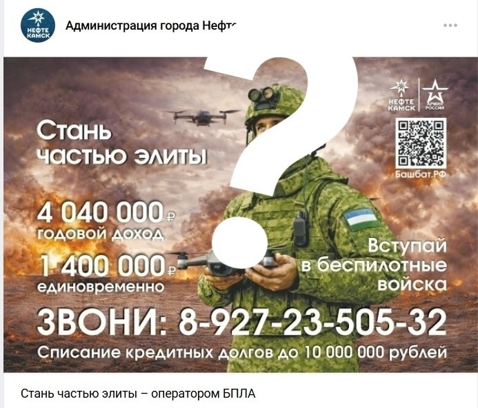 ⁉ Неграмотная по своему неоднозначному содержанию реклама контрактной службы беспилотных войск стала все чаще появляться в паблике администрации. Создается ощущение, что только беспилотные войска имеют статус элитных. Остальные рода войск что⁉Непородистые, что ли⁉ Мы разве не всей единой общей семьей противостоим, где каждый важен и нужен⁉ 👉 Подписаться на канал