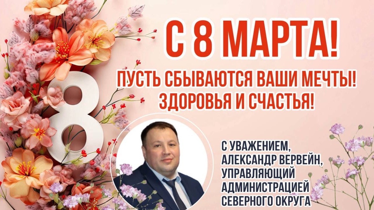Дорогие жительницы Северного управленческого округа, от всей души поздравляю вас с Международным женским днем — 8 Марта