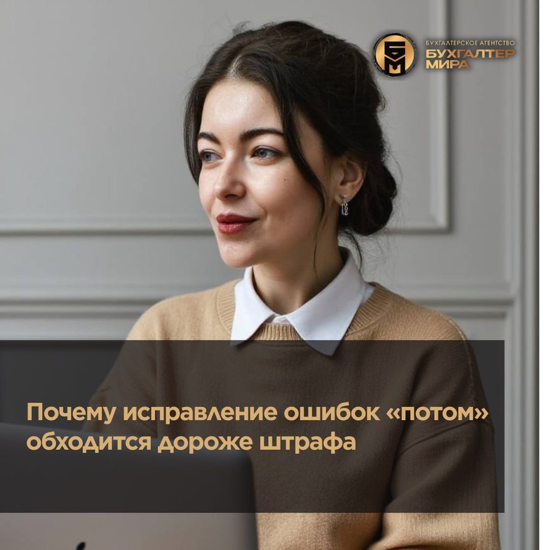 Одна из самых дорогих привычек в бизнесе — откладывать исправление ошибок. «Разберёмся позже», «Сейчас не до этого», «Пока никто не спрашивает». На практике именно «потом» стоит дороже самого штрафа. 📣 Ошибка никогда не остаётся одной В учёте и налогах всё связано. Одна неточность тянет за собой: 🟡 неправильную налоговую базу 🟡 искажение прибыли 🟡 ошибки в отчётности 🟡 неверные управленческие решения Через несколько месяцев это уже не одна проблема, а цепочка. 💰 Финансовая арифметика Штраф — это фиксированная сумма. ⏳ последствия «отложенной» ошибки: 🟡 пени 🟡 доначисления 🟡 перерасчёт за прошлые периоды 🟡 корректировки договоров 🟡 расходы на срочную бухгалтерию 🟡 потерянное время В итоге сумма растёт в разы. 🏦 Банковский фактор Если ошибка касается платежей или структуры: 🔴 усиливается комплаенс 🔴 запрашиваются документы 🔴 блокируются операции И тогда бизнес теряет не только деньги, но и оборот. ⚠️Самая опасная иллюзия «Пока не проверяют — всё нормально