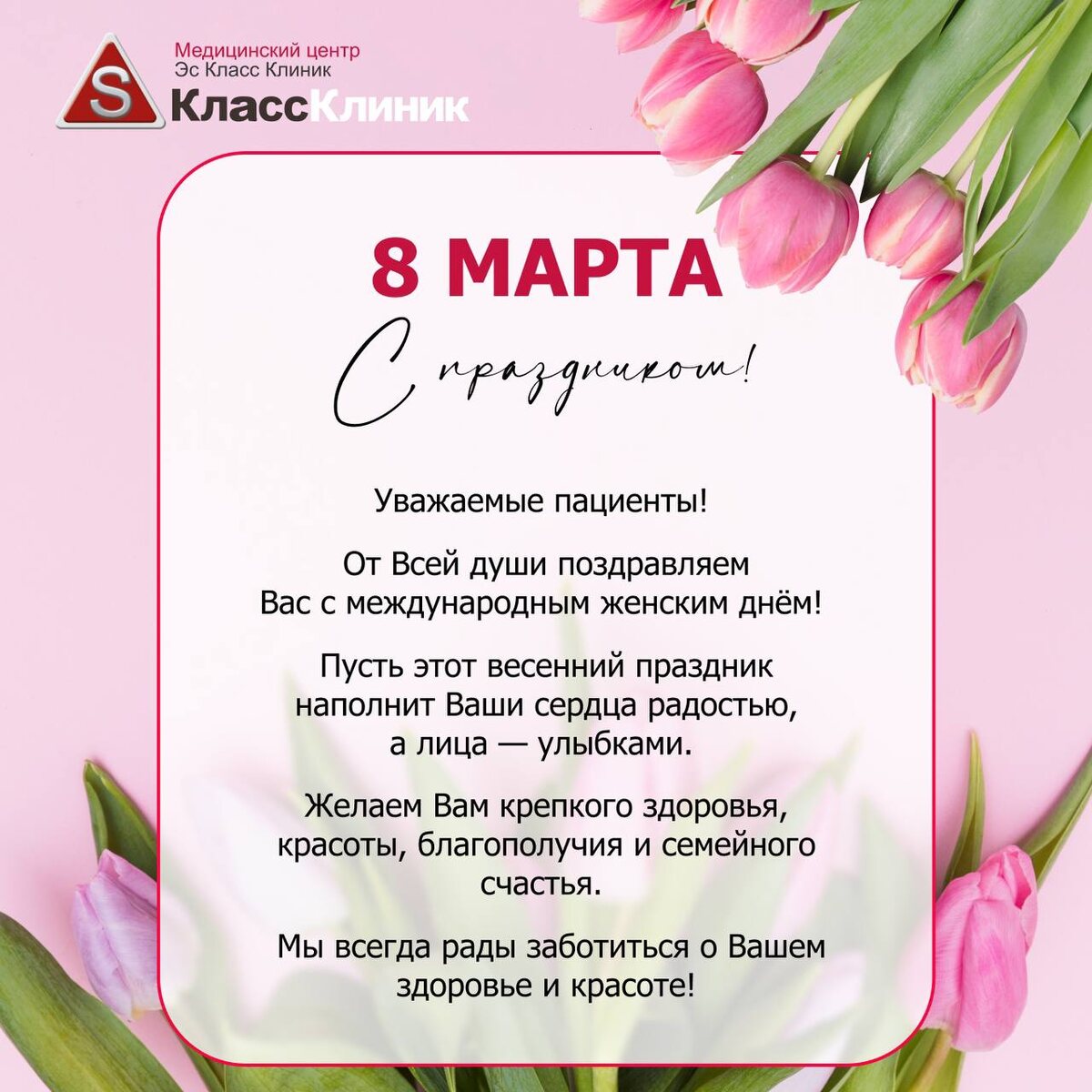 Команда «Эс Класс Клиник» поздравляет с Международным женским днём! 🌷