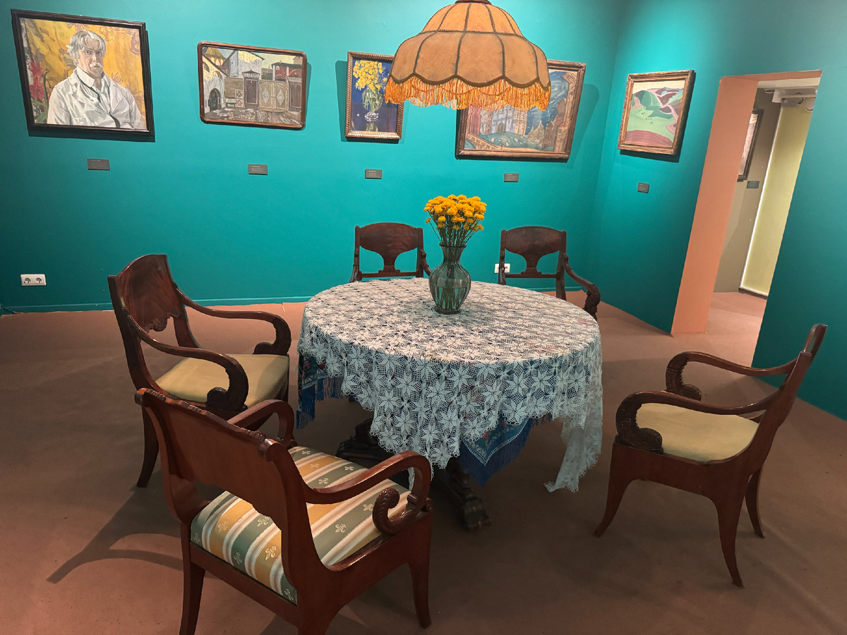 Завершает экспозицию стилизованный кабинет коллекционера, где на самых видных местах расположены два портрета . Один из них — самое известное произведение всей коллекции Куниных: «Автопортрет на фоне золотого платка» Александра Головина, знаменитого сценографа, работавшего в Мариинском и Александринском театрах .
