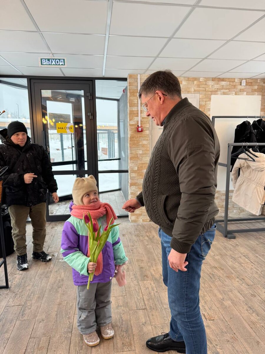 Маленькая Настя стала первой, кому достался букетик тюльпанов.