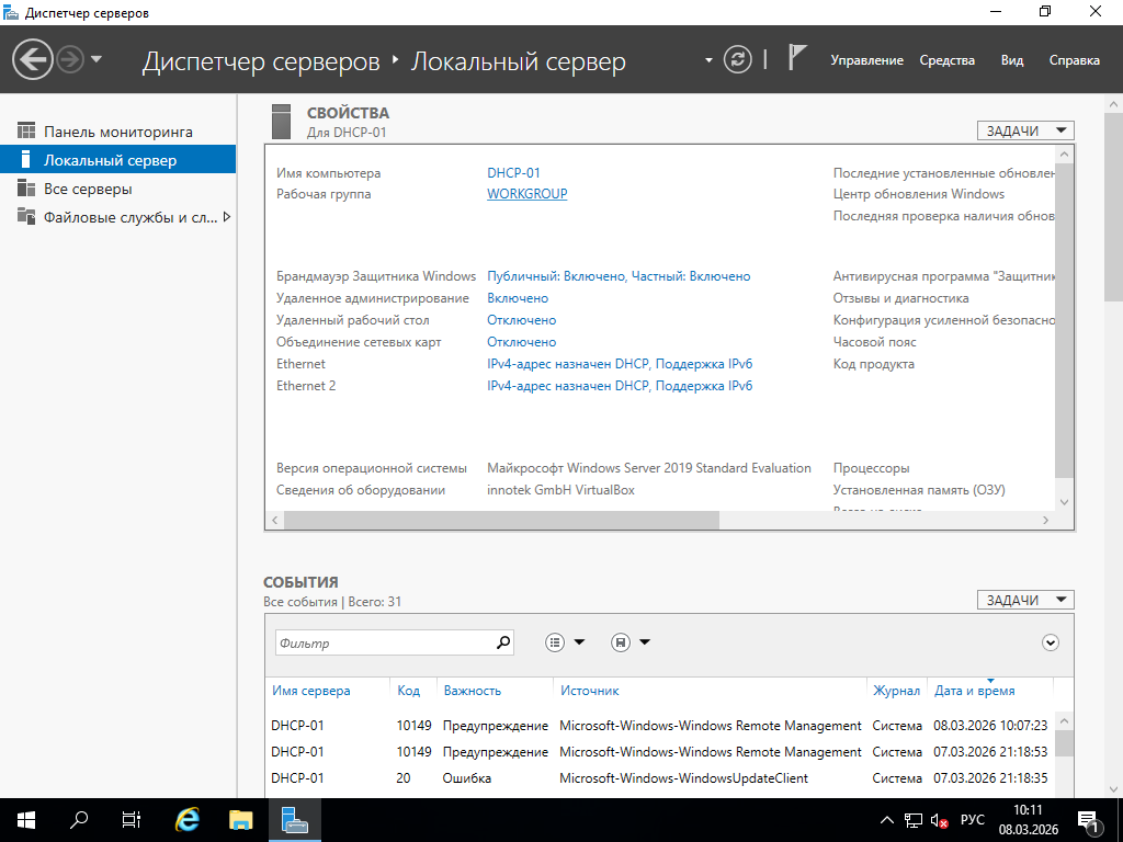 В диспетчере серверов переходим в "Локальный сервер" и нажимаем "WORKGROUP" Нажимаем "Изменить" Выбираем "Домен", вводим имя домена и нажимаем "ОК" Вводим учетные данные администратора домена и нажимаем "ОК" Нажимаем "ОК" Нажимаем "ОК" Нажимаем "Закрыть" Нажимаем "Перезагрузить сейчас"