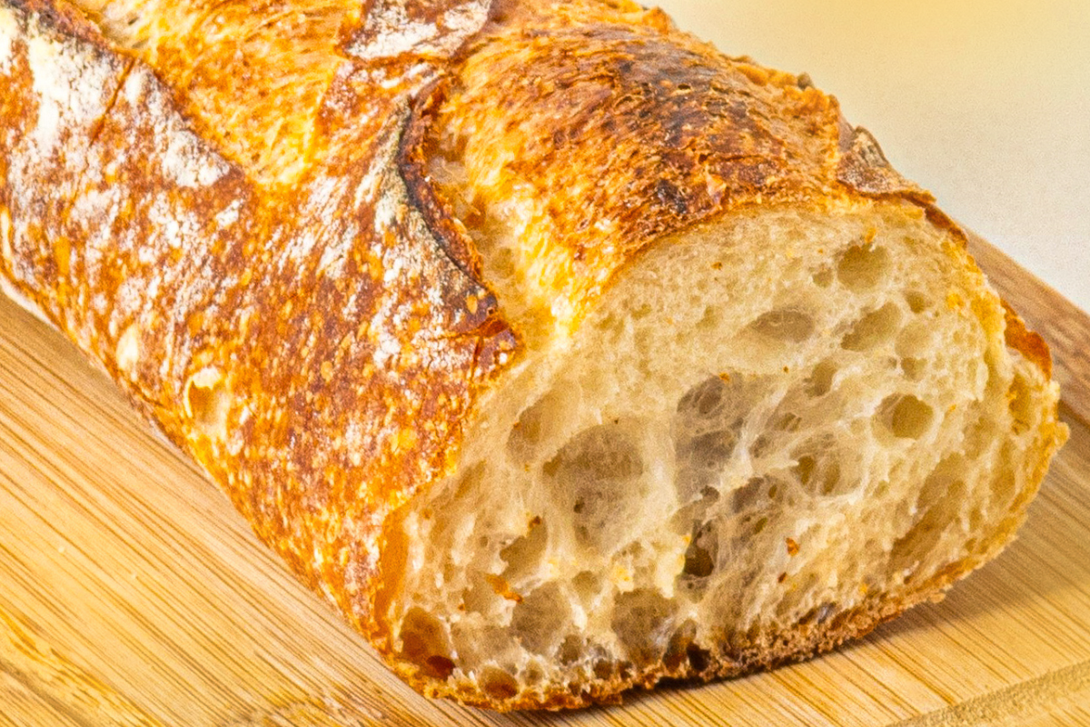 Этот хлеб однозначно стоит попробовать приготовить дома. По этому рецепту он получается хрустящим и ароматным. Ниже я расскажу какой сорт муки из доступных в магазинах лучше использовать для отличного результата. • 550 г пшеничной хлебной муки + немного для подпыла