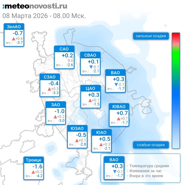 В 8:00 в Москве было от -1.9°C до +1.2°C, средняя температура -0.1°C #погода #Москва #весна #температура #8марта #воскресенье
