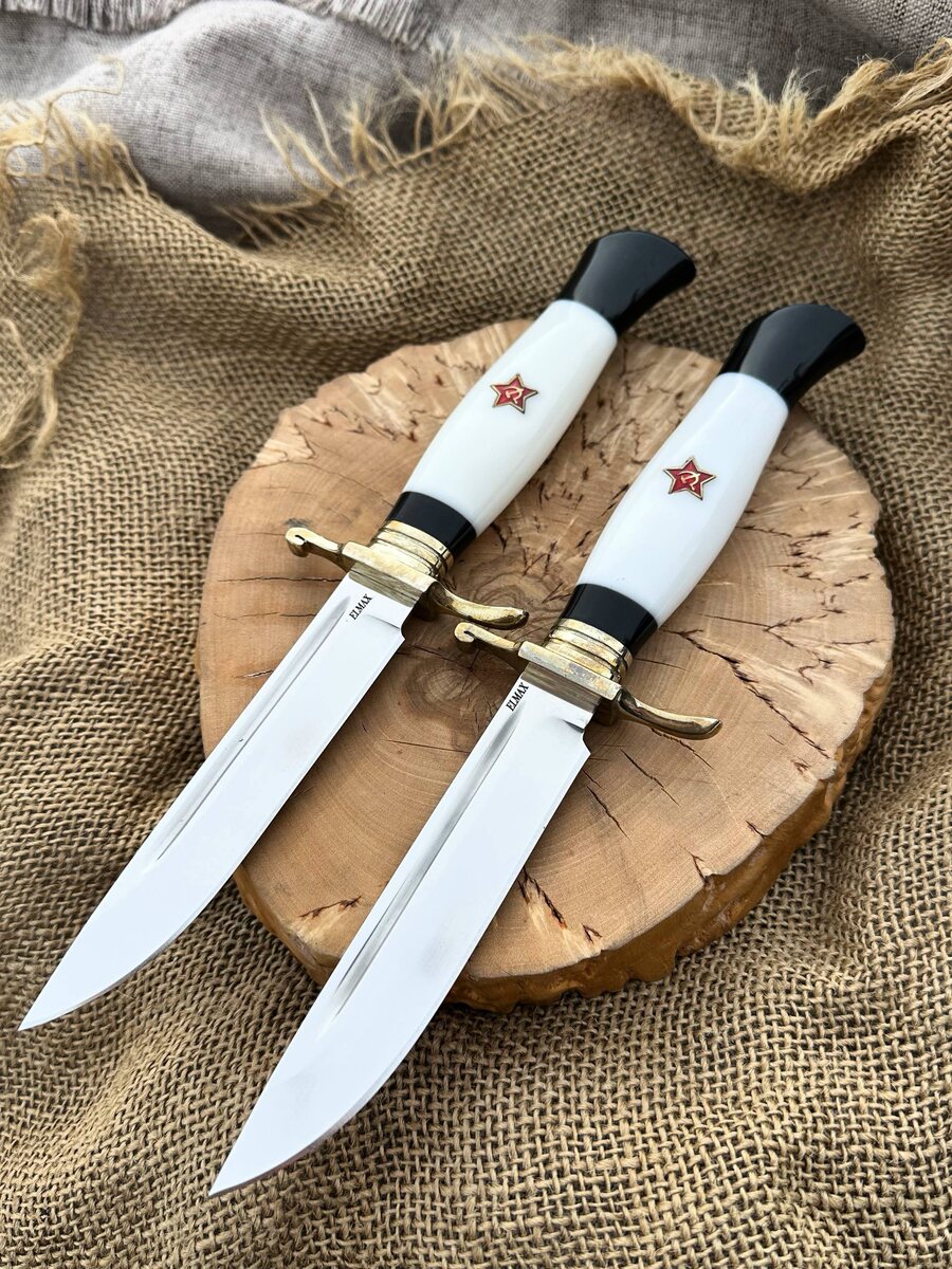! 🔥 ✨ *Эксклюзив от нашей мастерской — нож, сочетающий исторический характер и современные технологии!* Клинок — из нержавеющей порошковой стали Elmax 🗡️ *Прочность на излом и отличная стойкость к заточке!* Твердость — 62 HRC, заточка «в бритву» для максимальной остроты. Рукоять — из белого и чёрного акрила с инкрустацией Красной звезды. 💎 *Яркая деталь для коллекционеров и ценителей уникальных вещей!* В комплекте: ножны из натуральной кожи (Можем сделать формованные ножны — +8 000 руб.) Акционная цена — 12.000 руб. _Обычная цена — 19.943 руб._ 📲 Для заказа пишите в Telegram: [@Nazarklinokbot](https://t.me/Nazarklinokbot) Или WhatsApp/Viber: [ +79101343831](https://wa.me/79101343831) #нож #финка #КузницаНазарова #ручнаяработа #Elmax #акция #подарок #коллекция #охота #туризм