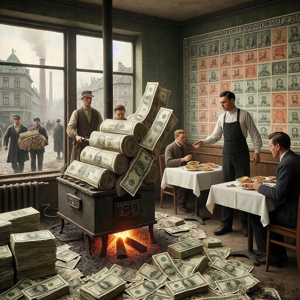 В Германии 1923 года, во время гиперинфляции, фабрики жгли деньги вместо угля. Бумажные марки стоили дешевле дров, и люди оклеивали стены купюрами вместо обоев. В ресторанах обед дорожал за время, пока его несли от кухни до столика. Инфляция достигла 3 млн % в месяц: яйцо утром стоило 4 млрд марок, к вечеру — 5 млрд. Дети строили башни из пачек денег, а пенсионеры топили печи банкнотами, потому что уголь стал недоступен. 📌 Абсурдные факты: · Вор украл корзину с деньгами, но выбросил её, оставив банкноты — ему нужна была тара. · Зарплату выдавали дважды в день с перерывом на обед, чтобы рабочие успели добежать до магазина. · Самой мелкой монетой стала... почтовая марка, потому что монетный двор не успевал чеканить. Германия вышла из кризиса только в 1924 году, введя рентную марку, обеспеченную землёй. А экономисты до сих пор изучают этот кошмар как учебник того, как печатный станок уничтожает страну. #экономика #история #деньги #факты #Германия 🔹 Telegram 🔹 MAX