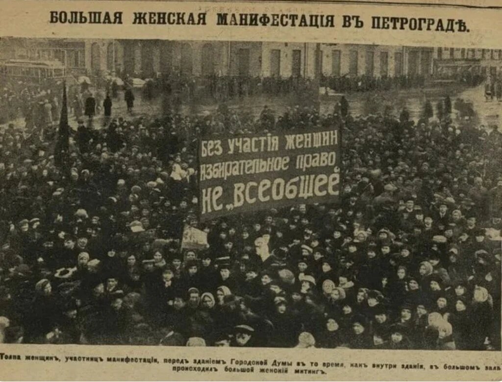 Начнём с того, что 8 марта по Григорианскому календарю, по которому мы живём сейчас — это 23 февраля по Юлианскому, действовавшему в России до 1918 года. То есть это — один и тот же день. Именно 8 марта по новому стилю в 1917 году в Петрограде прошла массовая демонстрация женщин под лозунгом «Хлеба и мира!» и с требованием избирательного права.