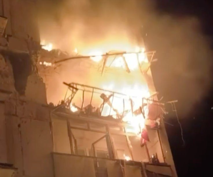 📍В городе Васильевка (Запорожская область) зафиксирован удар БПЛА самолетного типа по многоквартирному жилому дому. Сообщается о погибших и как минимум 10 пострадавших. На месте работают оперативные службы, идет разбор завалов и тушение пожара. (Видео)