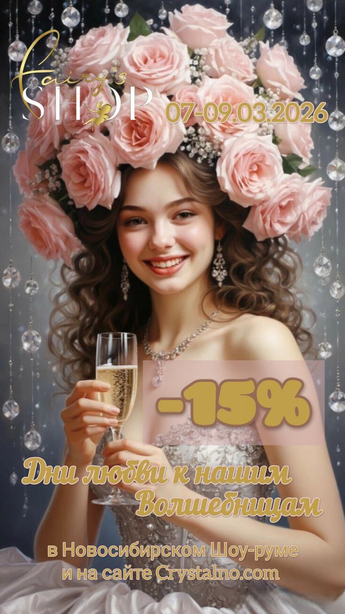 ! 🍾💐✨ 🎉Сегодня, 08.03.26 ждем всех в Новосибирском шоу-руме FAIRY’S SHOP 🎉 Где Вас ждет шампанское, цветы и СКИДКА -15 НА ВСЕ*🔥✨ ⚡️Работаем и празднуем 08.03.25 с 10:00 до 19:00!⚡️ *Действует на сайте Crystalno.com и в Новосибирском Шоу-руме, где мы будем создавать весеннее настроение и праздновать вместе!🥂🍾 📍Адрес: Нск, ул. Б.Богаткова, 239, отдел в ЛОГОСе . 🚈 Ст. метро Золотая Нива. 🚙 На парковке всегда есть места. #феивделе #вдохновениеотфей #плюшкиотфей