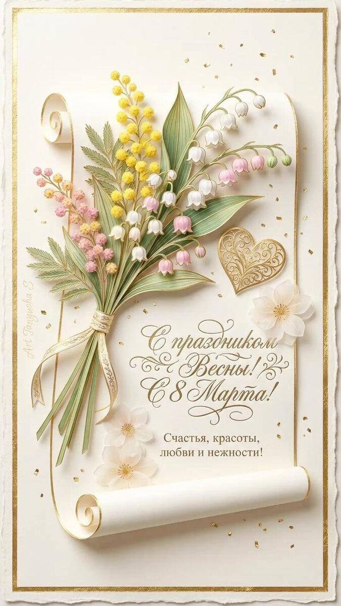 Пусть ваша улыбка озаряет мир ярче весеннего солнца, а сердце трепещет от счастья. Желаем, чтобы все мечты находили воплощение, а жизнь дарила только радостные события!💐