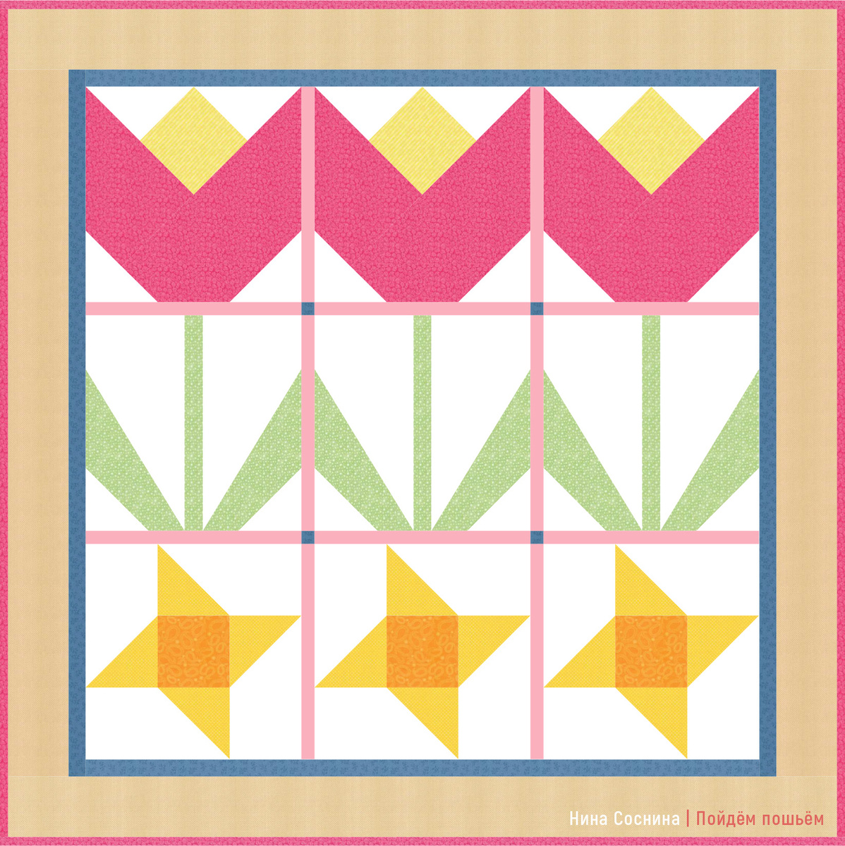 🎁 Лоскутный топ «Тюльпаны» для интерьерного панно. Это готовый шаблон, по которому легко собрать аккуратную композицию даже тем, кто только начинает шить. Лоскутные тюльпаны не завянут через несколько дней - они будут радовать вас долго. А главное, у каждого панно получится свой характер: всё зависит от выбранных тканей. С 8 марта! Пусть весна принесёт тепло, вдохновение и яркие идеи для творчества. 🌷