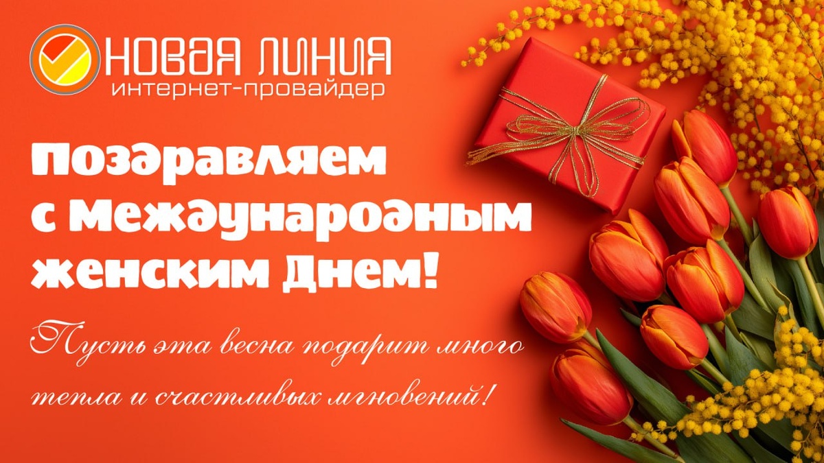 ! Поздравляем вас с прекрасным праздником - Международным женским днём! Желаем вам весеннего настроения, гармонии, мира, любви и исполнения самых заветных желаний. ☀️ Пусть рядом всегда будут люди, которые поддерживают и вдохновляют, а связь с близкими будет такой же быстрой и надёжной, как наш интернет!