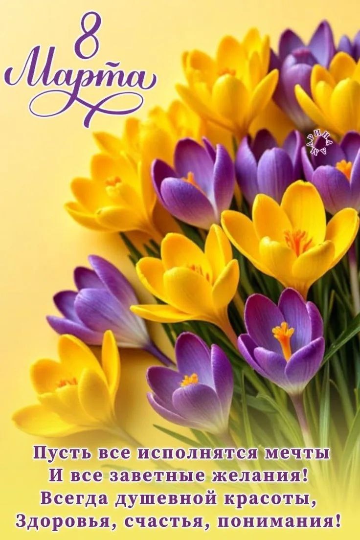 …. 🌸✨ Поздравляю вас с 8 марта 🔆 днём нашей красоты, силы, нежности и волшебства. Пусть в вашей жизни всегда будет место чуду, вдохновению и радости. Пусть сердце будет наполнено любовью, душа 🌈 гармонией, а мысли 💭 светом и верой в свои мечты. Пусть каждая из нас чувствует свою ценность, сияет своей уникальной энергией 💫 и смело идет к изобилию, счастью и исполнению желаний. Пусть Вселенная мягко и щедро открывает перед вами новые двери. 🚪 Пусть рядом будут люди, которые поддерживают, вдохновляют и делают жизнь ещё ярче. И пусть женская энергия сегодня и всегда создаёт вокруг нас красоту, тепло и настоящую магию . С праздником, с 8 Марта! 🌷💫