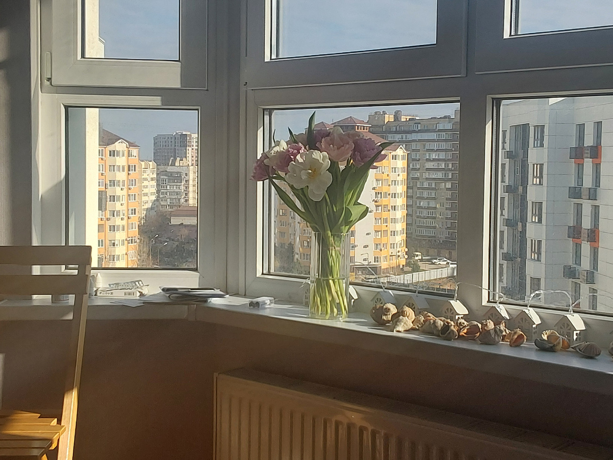 Я тут как решу что написать- хоть стой , хоть падай. Планы есть - здоровья нет. В самый праздник - бронхит с соплями, пардоньте. Короче, привет от невезучего блогера! Но вас, всех девочек моих, нежно поздравляю и нежно обнимаю! Мальчикам тоже большой привет! Вчера вот у нашего " Перекрестка" было полно тюльпанов! Самых разных. Мужики с растерянными лицами и вытаращенными глазами скупают все подряд: и тюльпаны, и конфеты и сладости и мишек плюшевых ! А у нас чегой- то ваз дефицит в квартире, поэтому мою копилочку ракушек мы вытащили, а взамен поставили шикарный букет. Необычные тюльпаны! И они пахнут! На самом деле! А то я вчера нюхала на улице- ну не пахнет... Так что вот. Сейчас не знаю, чем займусь, я не выспалась. А проспать солнечный день даже и с простудой - ну такое себе. Морюшко лечит. Надо дойти до берега. Что и как отпишусь дальше ... Всех еще раз обняла. А..у меня ж шикарные зарисовки есть о 8 марта. Позже выложу, если найду, как перепосты. Мда..отличный подарок от тсж к 8
