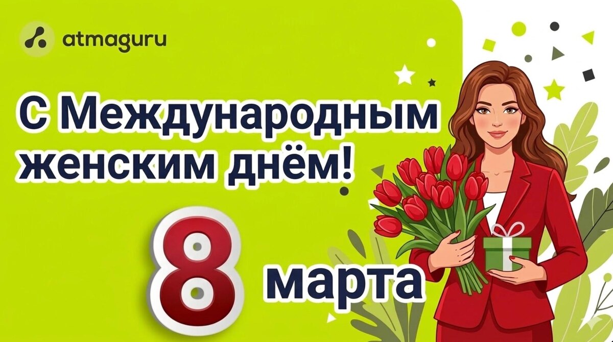 ! Вы делаете мир красивее просто тем, что вы в нём есть! Спасибо за вашу теплоту, за заботу о близких, за терпение, за вдохновение, мотивацию и энергию, которые вы дарите окружающим. Пусть этот день будет наполнен вниманием, цветами, комплиментами и приятными сюрпризами. А каждый новый день приносит поводы для улыбок, радости, счастливых незабываемых моментов и того самого ощущения, что всё идёт именно так, как надо. 🌹Любите сами и будьте всегда любимы, оставайтесь такими же прекрасными, неповторимыми, удивительными и нежными. С праздником! Ваша команда Атмагуру 🌿