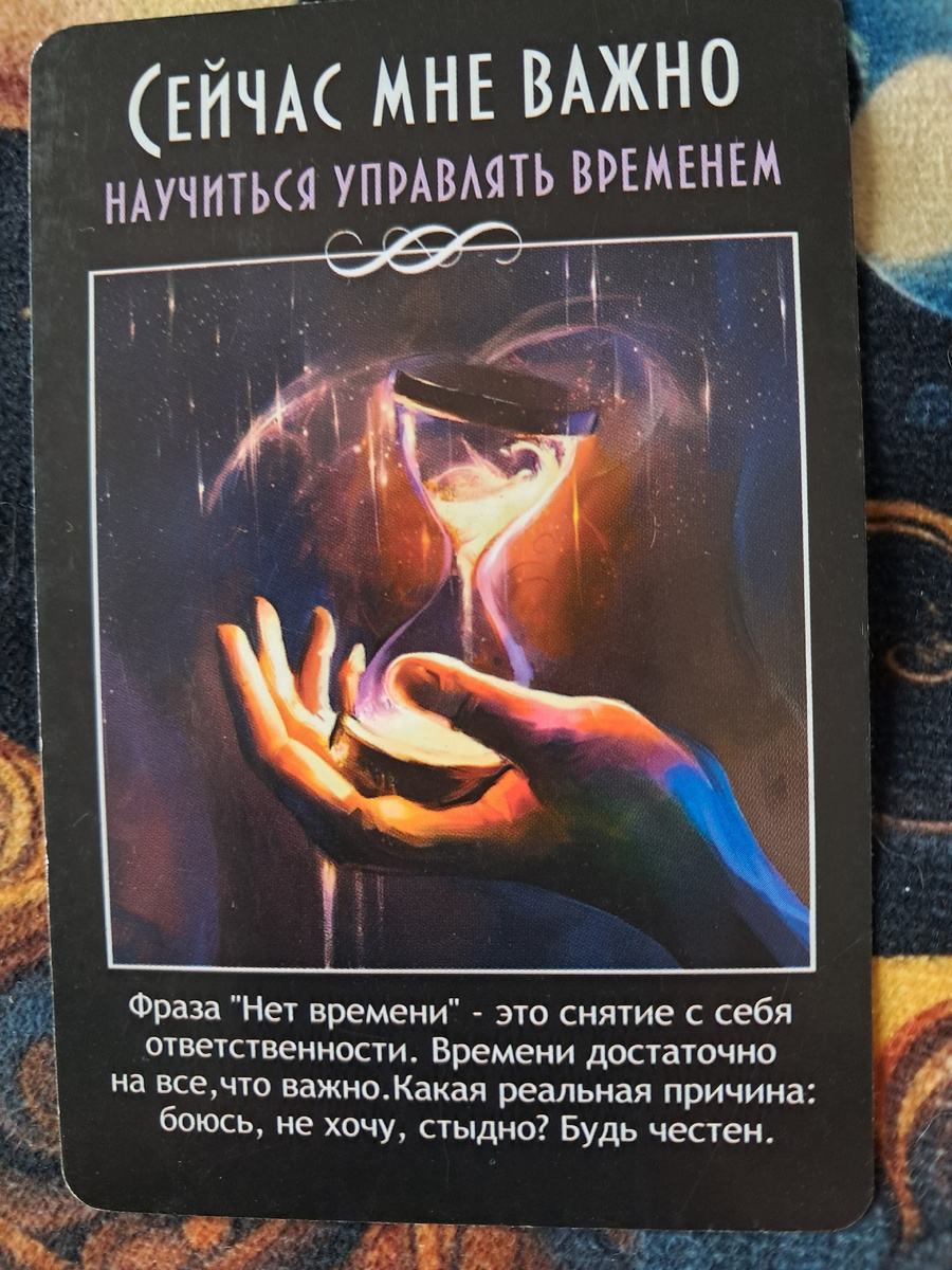 Эта карта приносит энергию радости, встреч, возможно, домашнего уюта или торжества. После трудного утра или дня вас ждёт приятное событие, поддержка близких, чувство защищённости. Подсказка: позвольте себе отдохнуть и порадоваться. Это укрепит ваши силы.