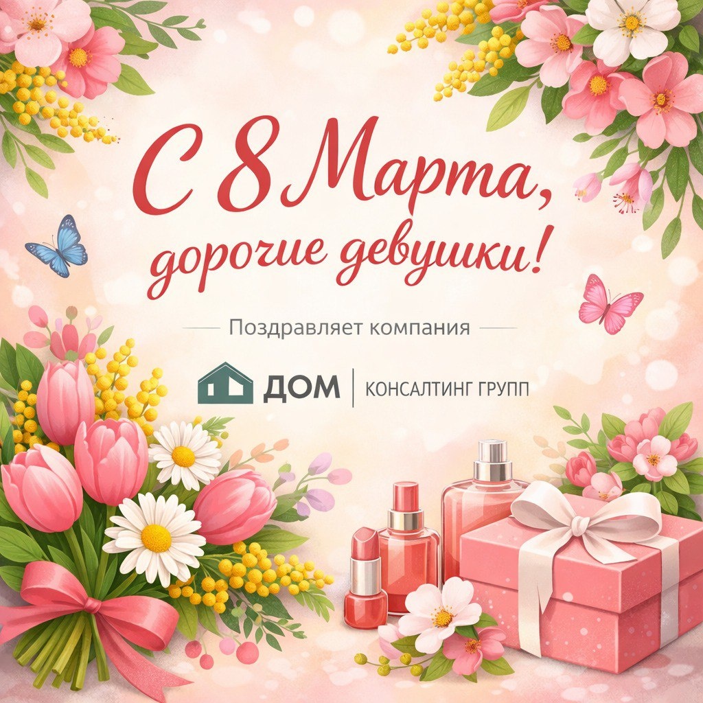 ! 🌸 Поздравляю вас с прекрасным праздником — 8 Марта! 💐 Пусть в вашей жизни всегда будет место для радости, вдохновения и новых возможностей. Желаем вам весеннего настроения, гармонии, успехов в делах и исполнения самых заветных желаний. Пусть каждый день приносит улыбки, тепло и приятные моменты! ✨ Спасибо за вашу энергию, мудрость, красоту и силу, которые делают этот мир лучше. С уважением и теплыми пожеланиями, ДОМ | Консалтинг Групп 🏡