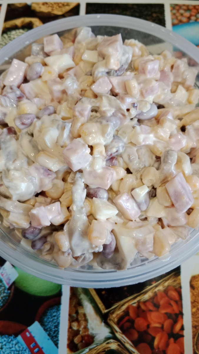 Тут всё идеально сошлось: нежные яйца, сытная фасоль, сладковатая кукуруза, пикантная ветчина и эти волшебные, чуть хрустящие снаружи, но мягкие внутри жареные шампиньоны. Они дают какой-то совершенно новый, «горячий» вкус привычному салату. Бегите на кухню, честное слово! Это тот случай, когда из простых консервов получается ресторанное блюдо. Ваши домашние будут в восторге и обязательно спросят, откуда такой крутой рецепт. А вы загадочно улыбнетесь и скажете: «Да так, случайно в магазине познакомились...» 😉