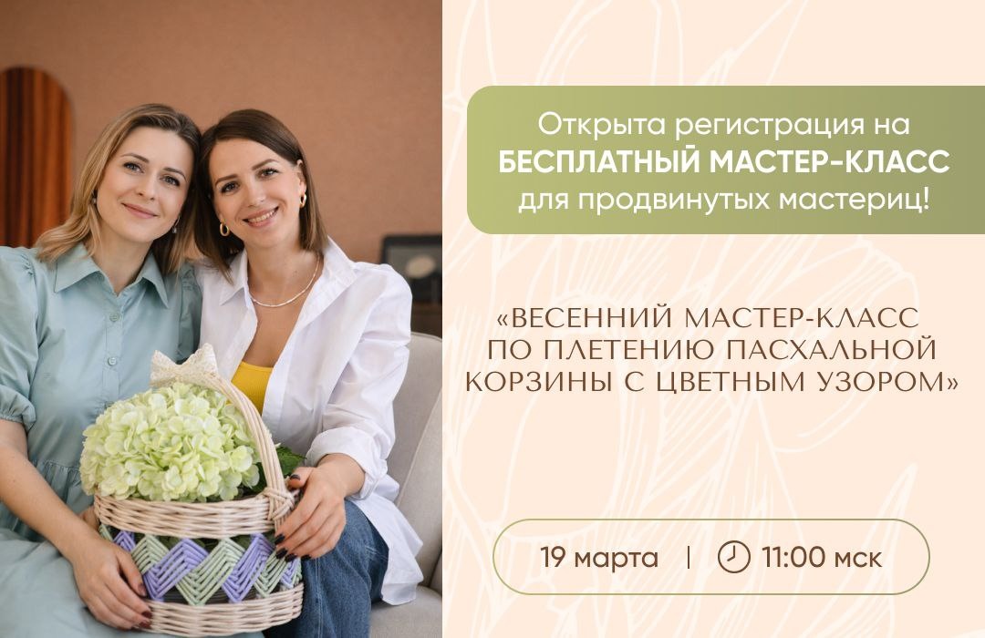 ❤️❤️❤️❤️❤️❤️❤️❤️❤️ ❤️❤️❤️❤️❤️❤️❤️❤️❤️❤️❤️ 🌷🌷🌷 «Весенний мастер-класс по плетению пасхальной корзины с цветным узором» 🗓19 МАРТА ❤️⏰11:00 МСК Вход — 0 РУБЛЕЙ 👉 ЗАПИСАТЬСЯ *** Мастер-класс подходит только для мастериц с опытом! Приходите обязательно! 🥳 Будет по-весеннему тепло и уютно, по-пасхальному празднично! Места ограничены❌ ▶️ СМОТРЕТЬ ПРОГРАММУ За регистрацию на мастер-класс вы получите Урок по окрашиванию лозы «ПАСТЕЛЬ» ❤️❤️❤️ ЗАРЕГИСТРИРОВАТЬСЯ