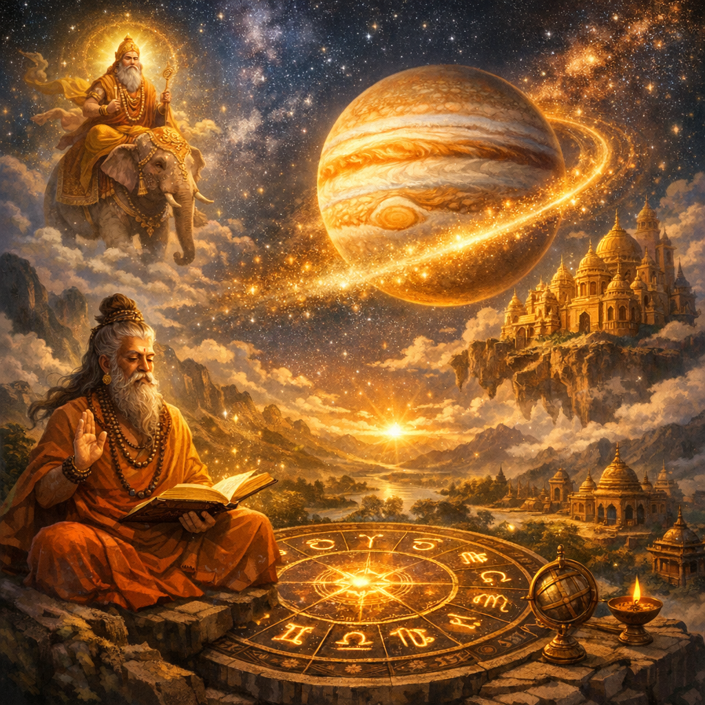 В ведической астрологии Юпитер (Гуру) — планета мудрости, роста, знаний и благословений. Когда он движется ретроградно, многие процессы замедляются: мы пересматриваем планы, возвращаемся к старым вопросам, ищем внутренние ответы.